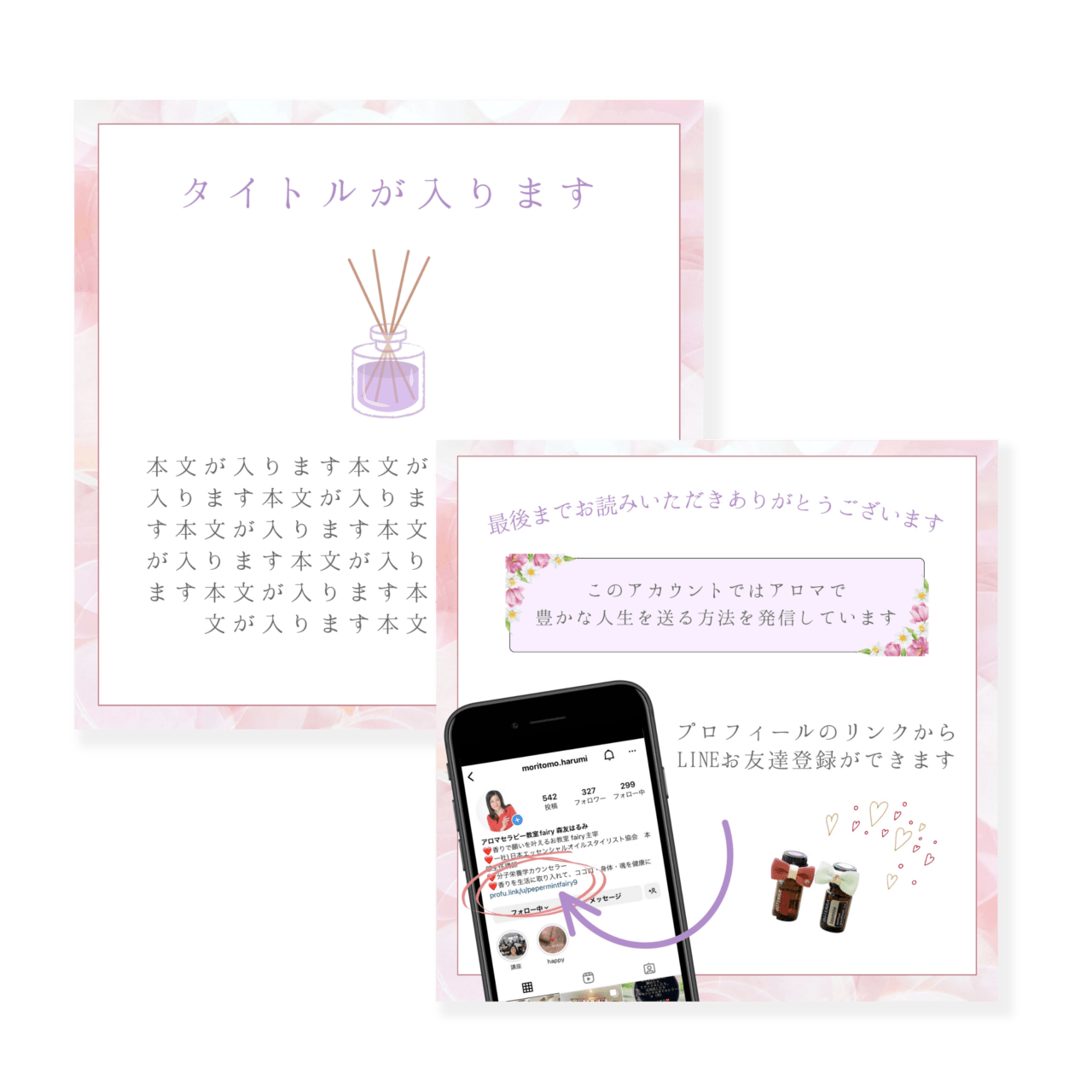 【Instagram投稿画像制作】香りで願いを叶えるお教室fairy様